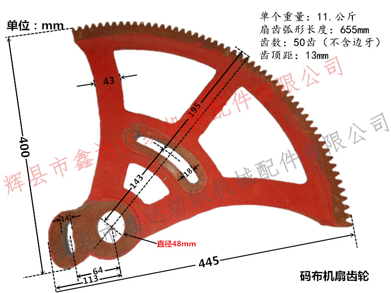 碼布機(jī)扇齒輪(扇形齒輪)參數(shù)